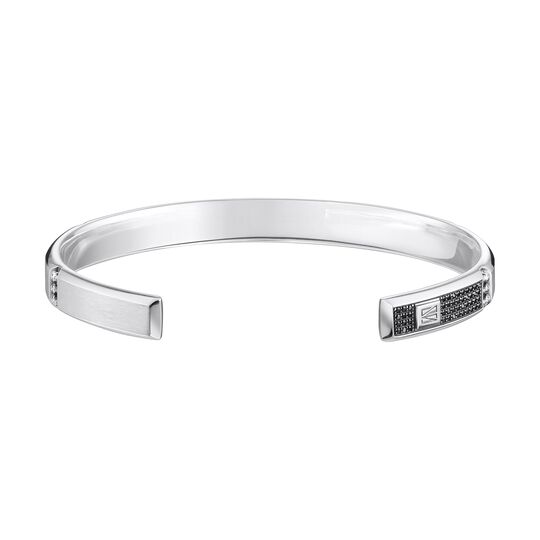 The broad ELEMENTAL Cuff made of 925 sterling silver is an everyday foundation, in a thicker size from the classic cuff. May it serve as an independent acknowledgement of the power of minimal decor, or use the Elemental cuff as an accompaniment to an array of other bracelets , rings, and bangles. Style it uniquely, as much or as little as you desire. As the spirit moves you. A facette with black diamonds attracts the attention.