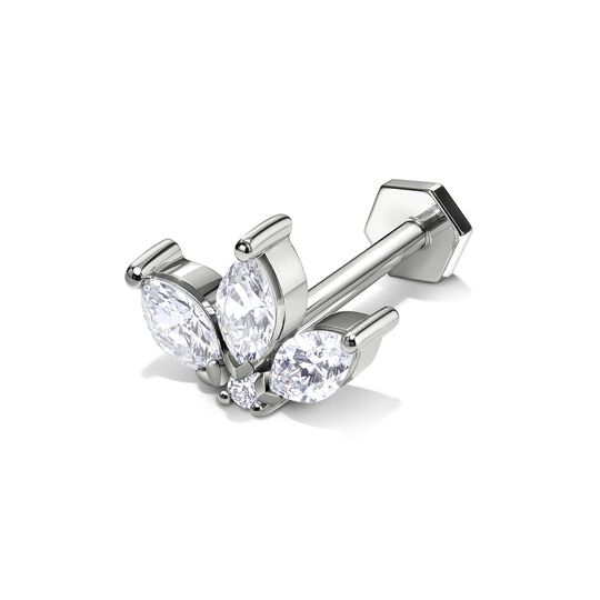 Piercing clou d'oreille en or 18 ct avec 3 diamants marquise sertis et un diamant rond, monté sur une tige filetée de haute qualité assortie d’un tube fileté.