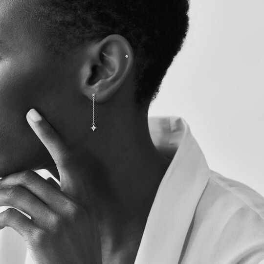 A polished spiked golden ball is wrapped by two 18K white gold loops, dropped upon a chain attached by a single diamond. Wear the dangling chained Sacred Planet alone or styled with other piercings.